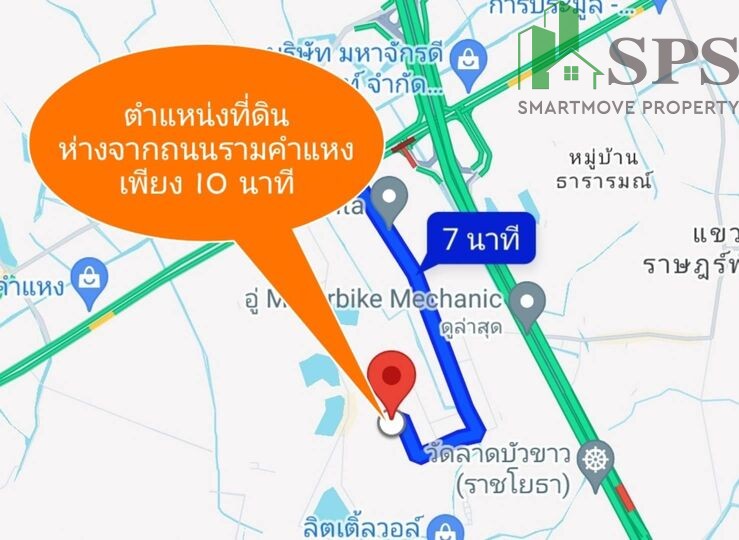 Empty land for sale, already filled, Ramkhamhaeng 118, intersection 48-1, next to the road on 2 sides, suitable for building a residential house or home office. (SPSJK07)