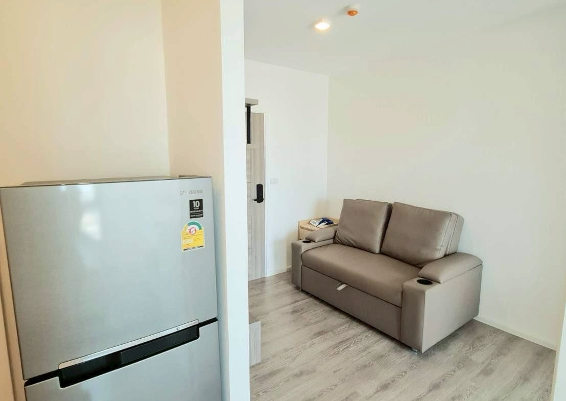 • ห้องนั่งเล่น: โซฟา 2 ที่นั่ง (ปรับเป็นเตียงนอนได้), โต๊ะกลาง, โต๊ะเก็บของแบบลิ้นชัก, ชั้นวางทีวี, ตู้รองเท้า, แอร์ DAIKIN 9,000 BTU