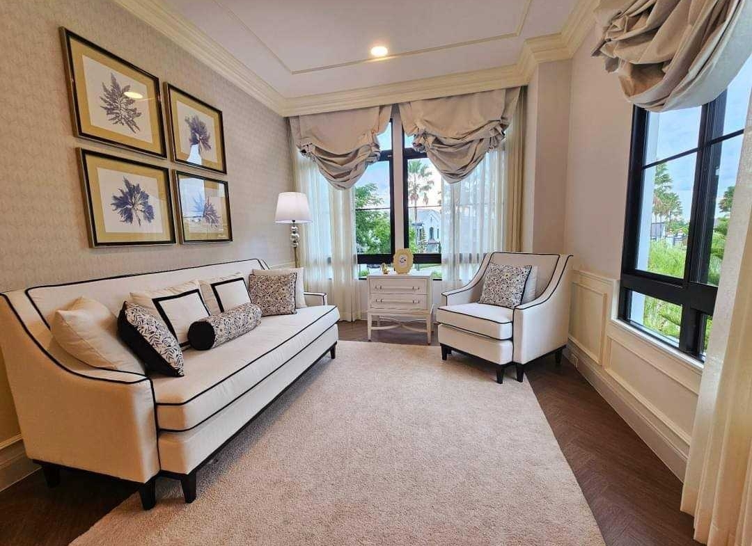 – ด้านหน้าหันทิศใต้ บ้านติดน้ำพุ สวนและน้ำรอบบ้าน ไม่มีบ้านของเพื่อนบ้านบล็อควิวเลย เป็นมุมส่วนตัวมุมเดียวของหมู่บ้าน