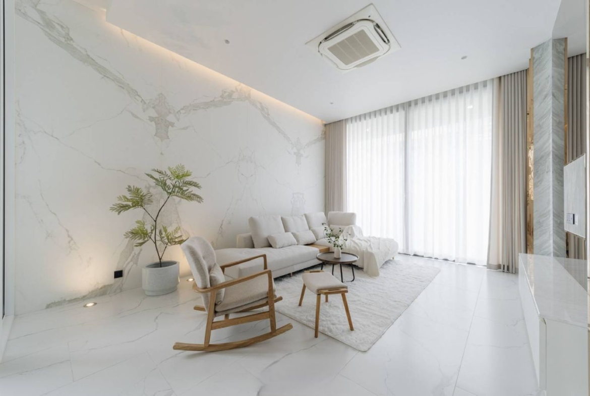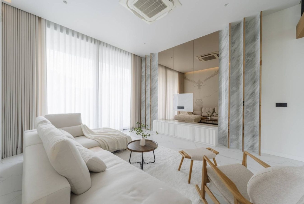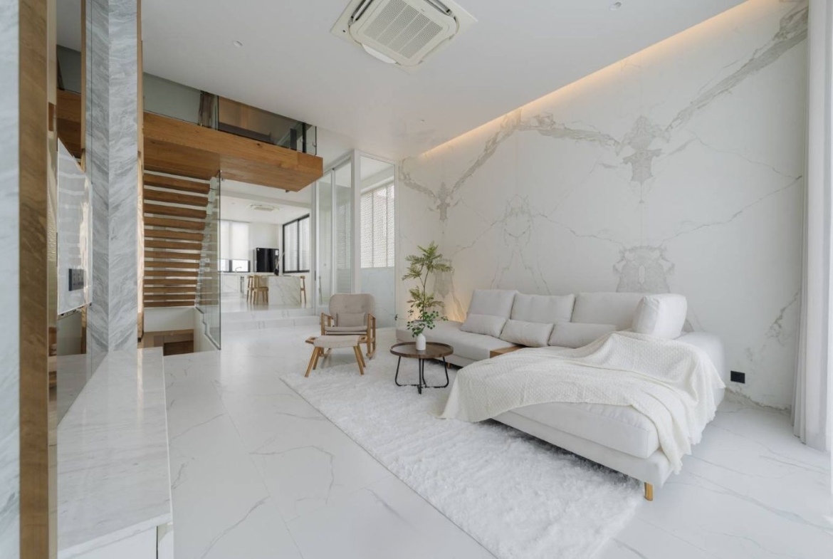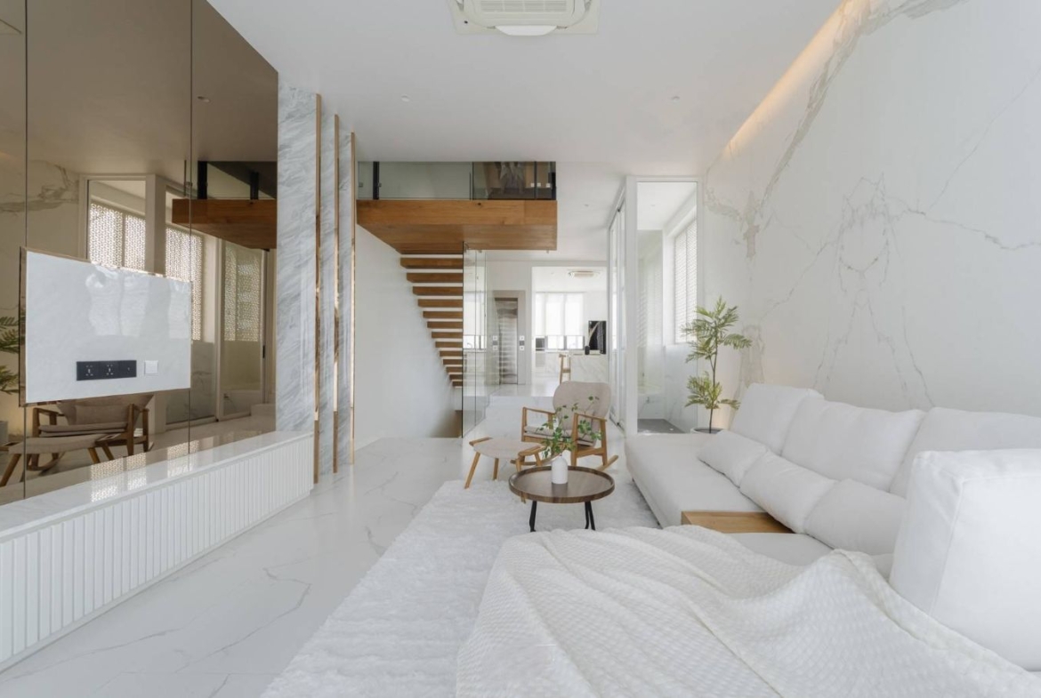 – พื้นที่ใช้สอยทั้งหมด: 580 ตร.ม.(รวมโซนแม่บ้าน ที่จอดรถ และสวนดาดฟ้า)