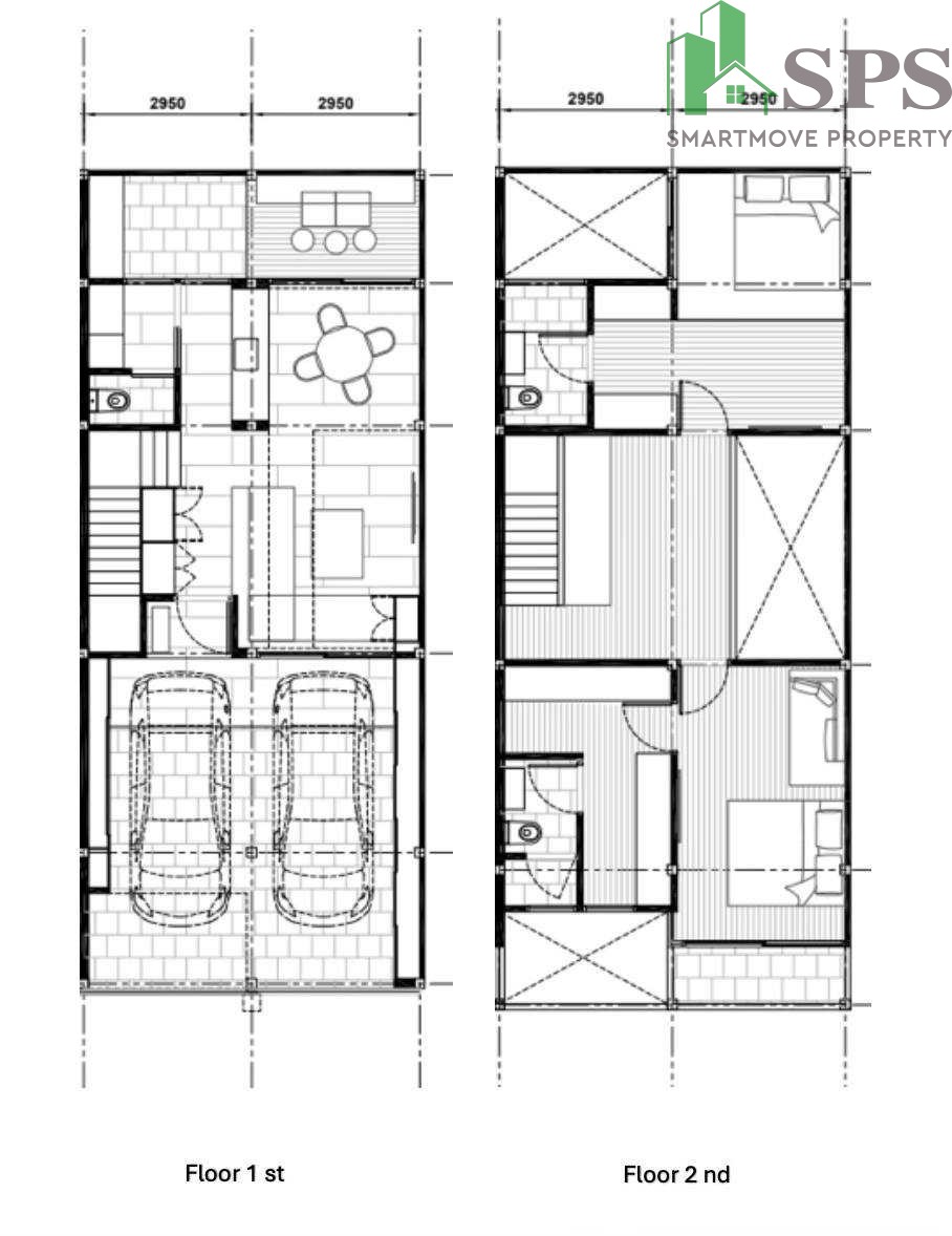 ชั้น 2: 2 ห้องนอน พร้อมห้องน้ำในตัว และ walk-in closet