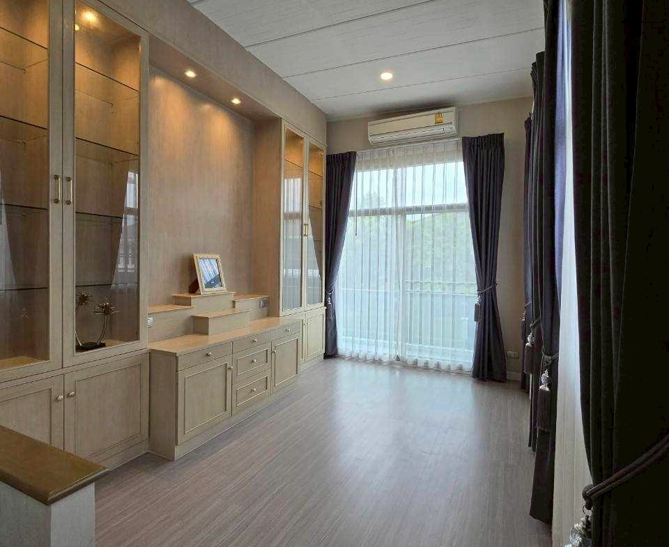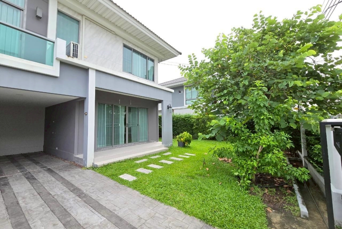 This is a two-story detached house in an excellent location, offering a shady atmosphere with abundant trees and top-notch security. The property is conveniently situated right on Krungthep Kreetha Road.