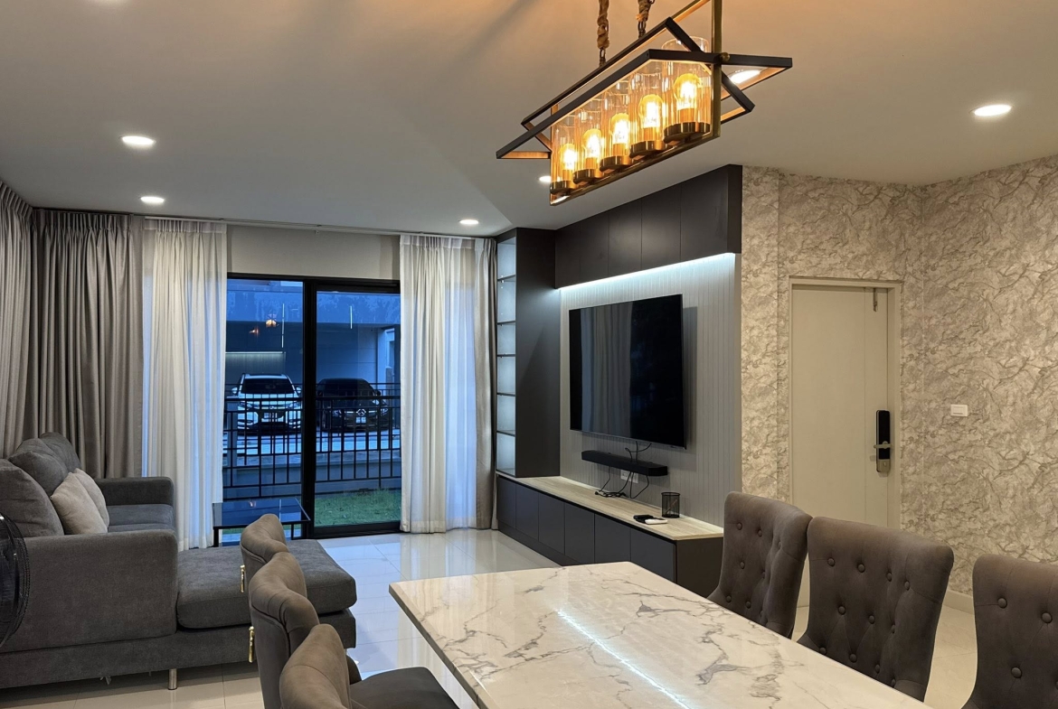 – Clubhouse / Fitness center / Large saltwater swimming pool / Children’s swimming pool / Large green garden area (over 5 rai) / 24-hour security / CCTV at project entrance/exit / KATSAN access control system / Magnetic burglar alarm system throughout the house