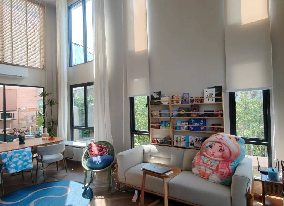 – เพดานโถงรับแขกสูง 5.2 เมตร และห้องนอนสูง 3.8 เมตร พร้อมผ้าม่าน
