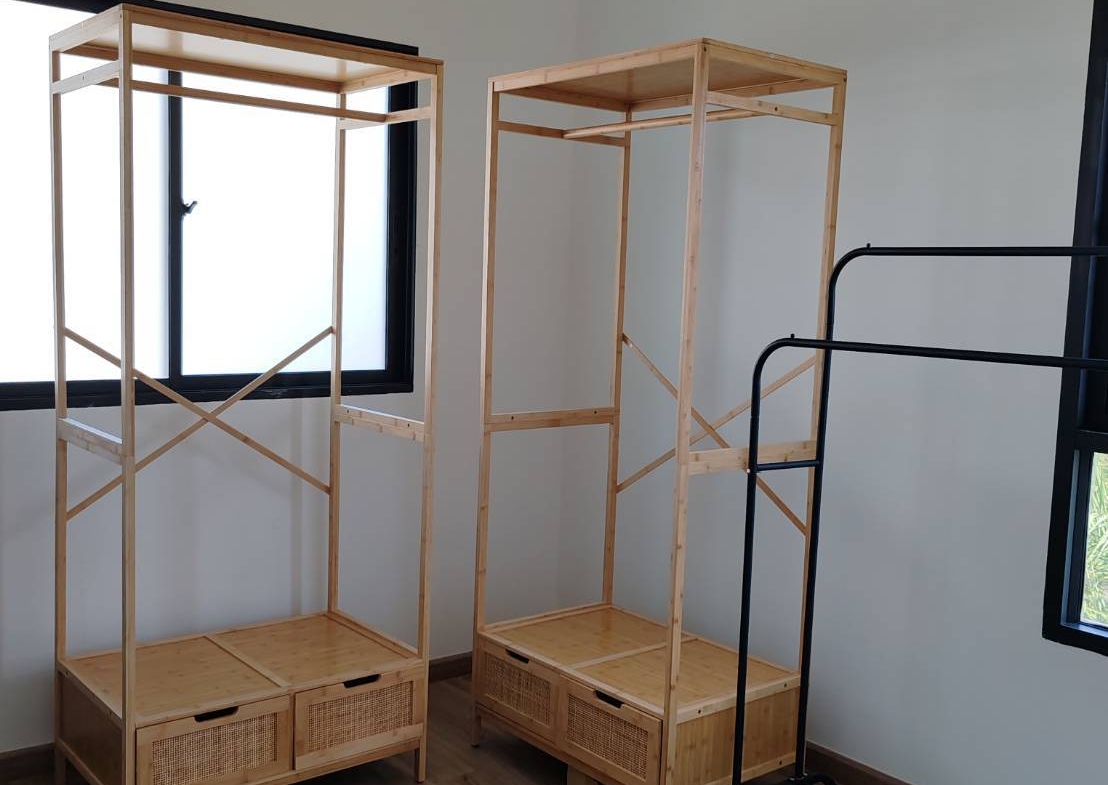 – Fully equipped functional kitchen including: 3-burner gas stove / Oven / Motion-sensor hood / Dishwasher / Microwave / Washer-dryer / 6 motion-sensor trash bins / Smart TV / Air conditioners
