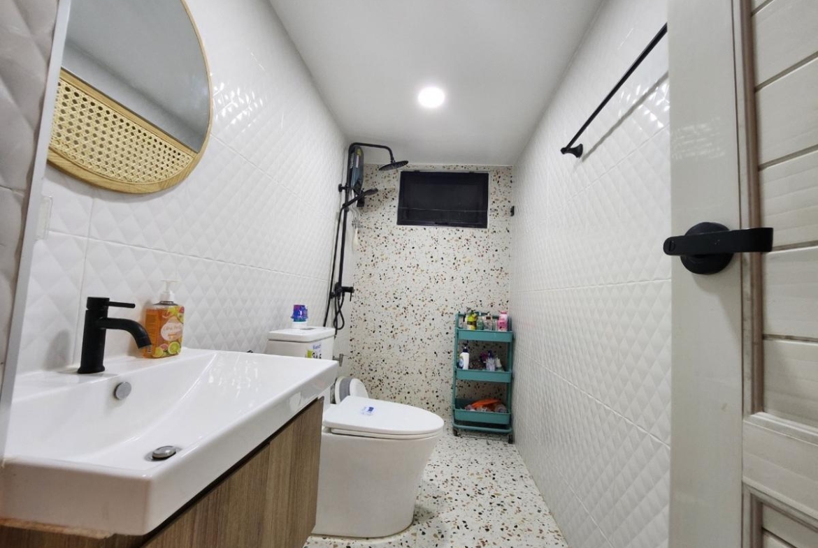 – Fully furnished: 2 beds, dining tables and chairs, wardrobes, 2 sofas, work desks, bookcases, TV cabinets, shoe cabinets, large storage cabinets, and electrical appliances such as TV, washing machine, 2-door refrigerator, gas stove, range hood, 4 air conditioners, water heater