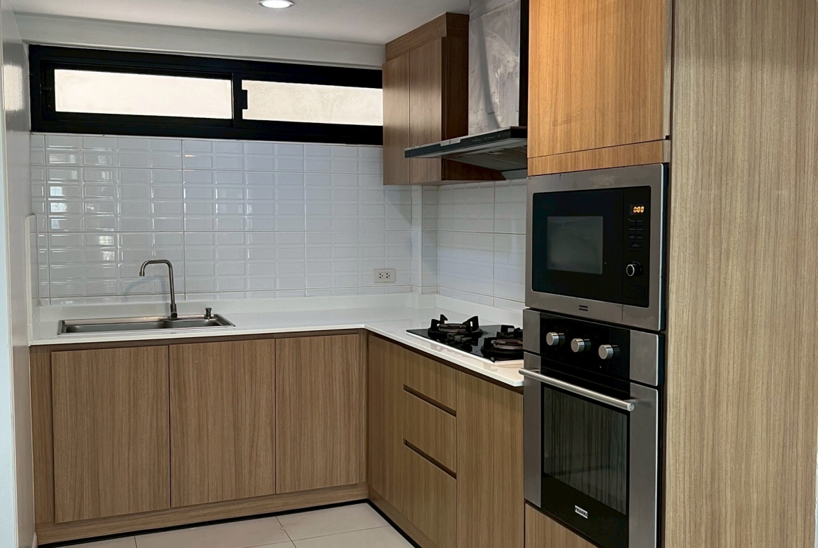 ครัวบิลต์อิน พร้อมเตาแก๊ส, เครื่องดูดควัน, เตาอบ, ไมโครเวฟ และอ่างล้างจาน