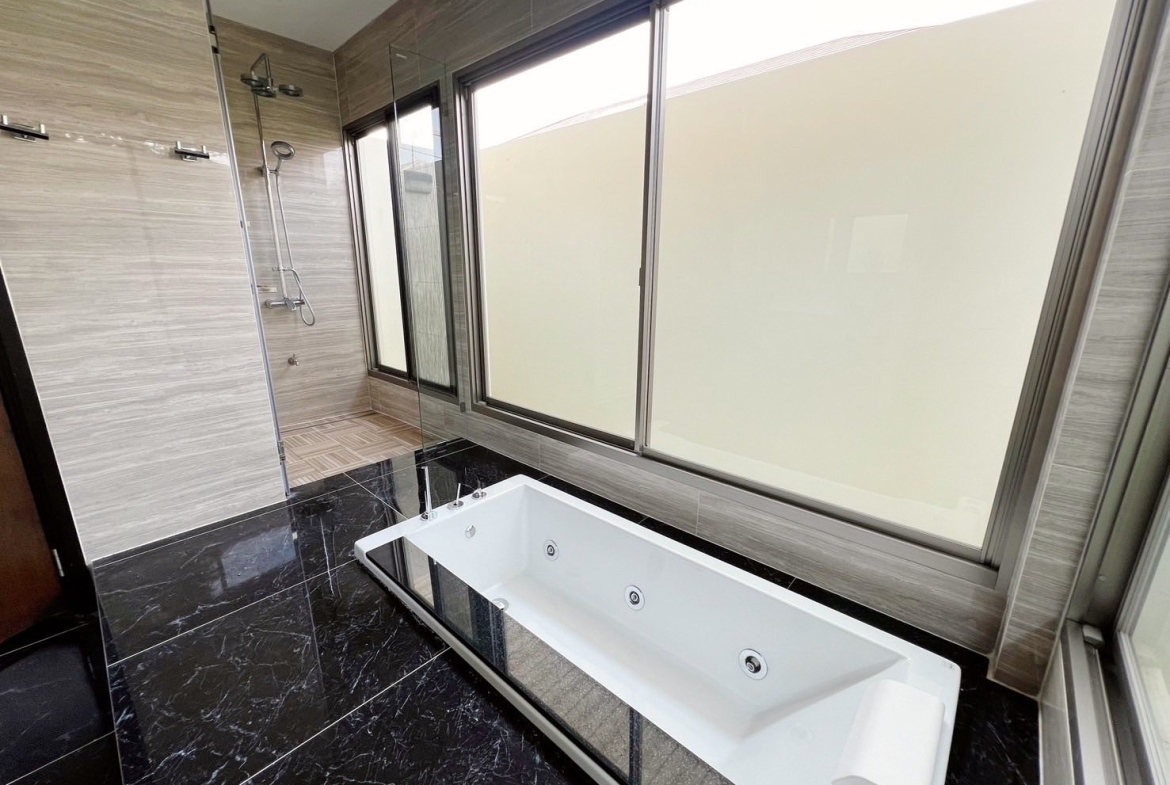 – 5 ห้องนอน / 6 ห้องน้ำ (แต่ละห้องนอนมีห้องน้ำในตัวทุกห้อง)(master bedroom มี walking closet และห้องน้ำมีอ่างจากุซซี่)