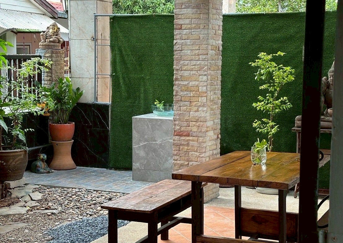 – สวนร่มรื่น พร้อมบ่อปลาคราฟ