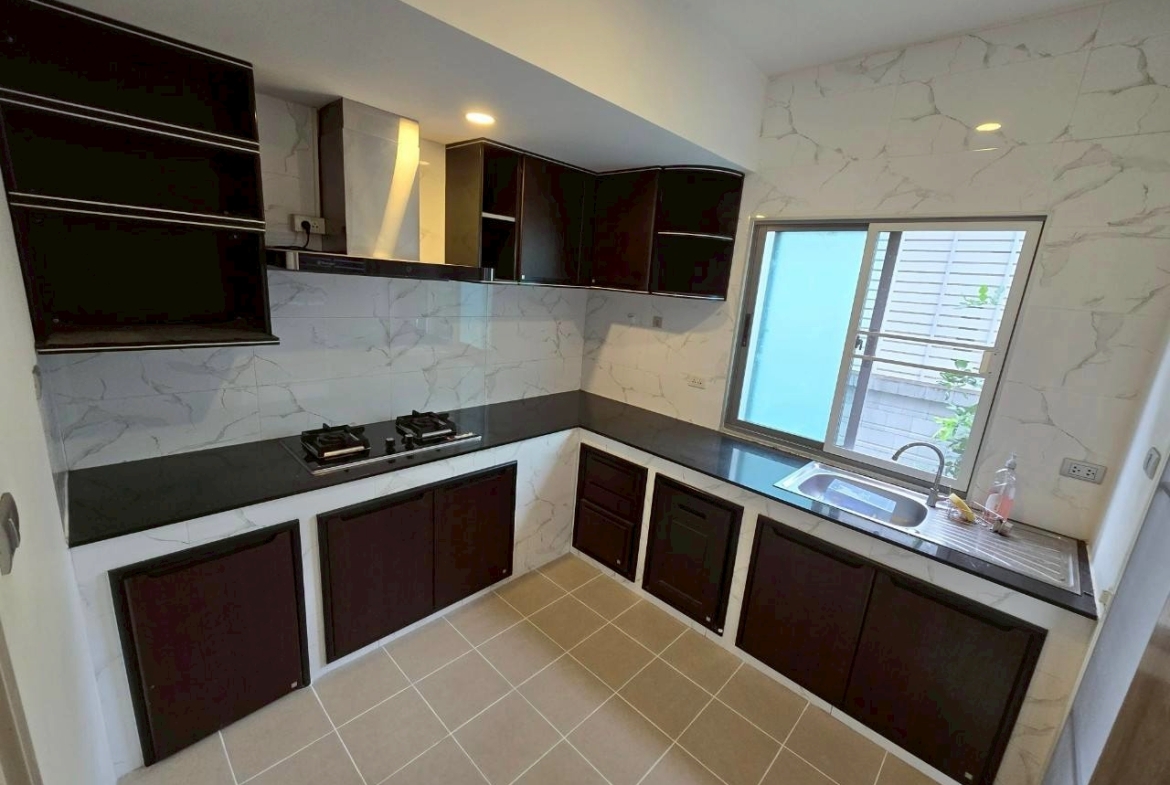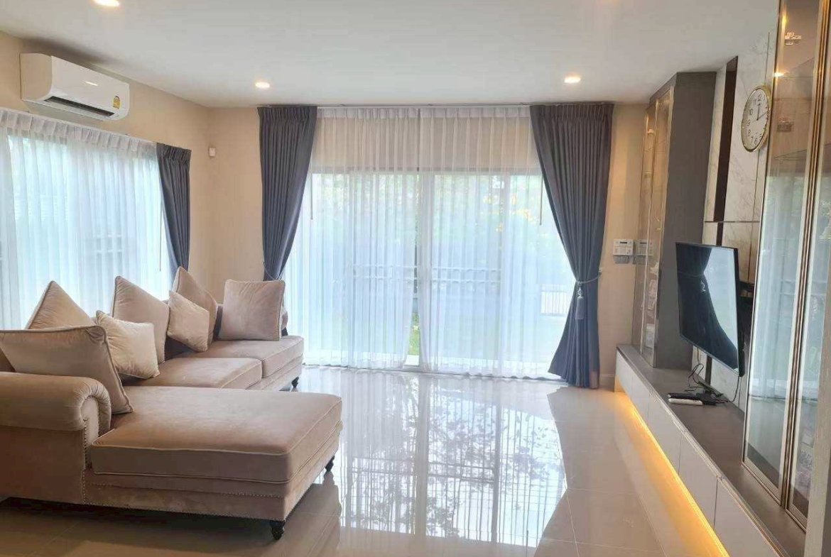 This is a two-story detached house in an excellent location, offering a shady atmosphere with abundant trees and top-notch security. The property is conveniently situated right on Krungthep Kreetha Road.