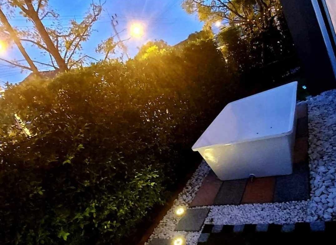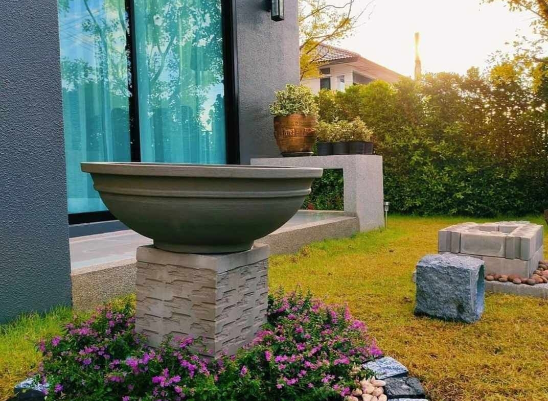 – The house faces north Beautiful garden around the house + bathtub in the garden
