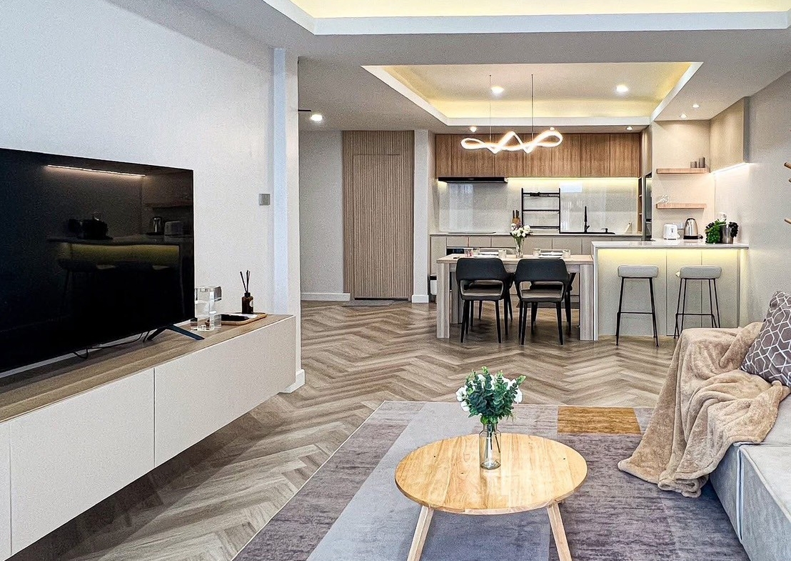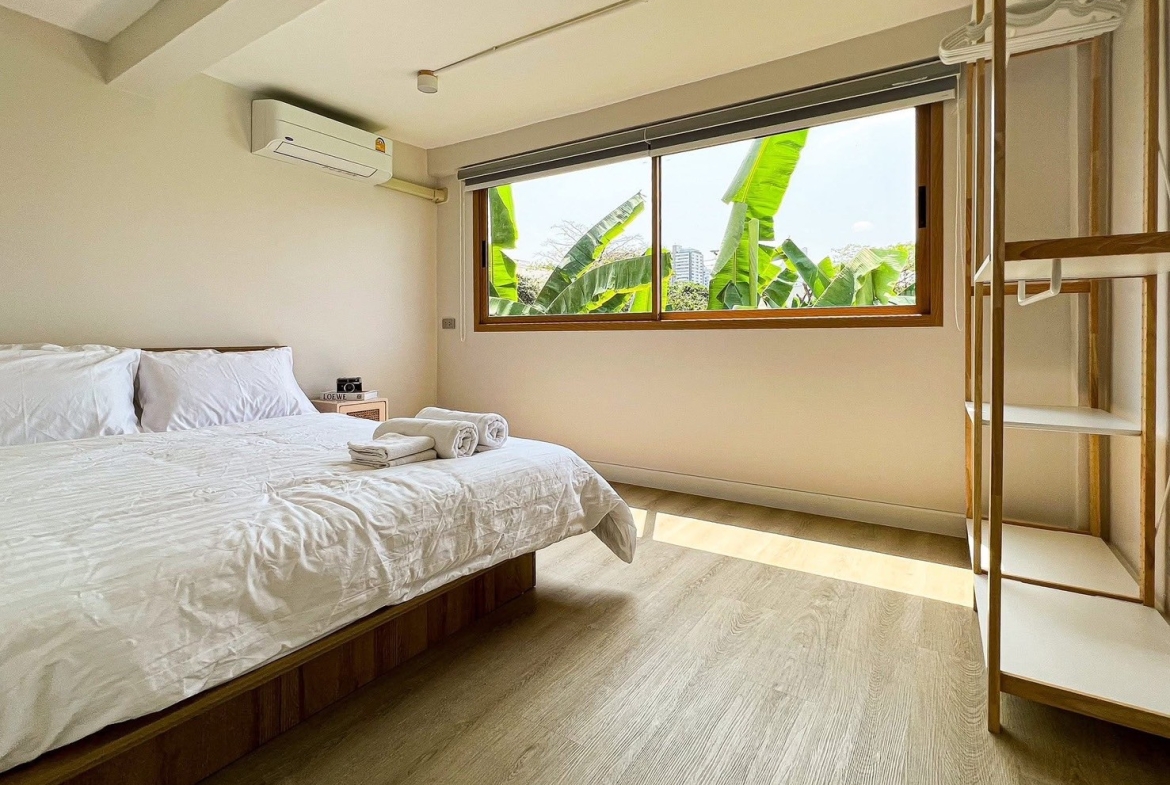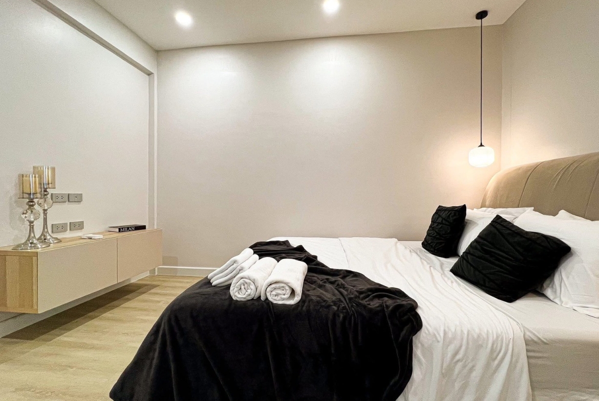 – ตกแต่งสไตล์โมเดิร์น บรรยากาศอบอุ่น มีเตียงนอน ตู้เสื้อผ้า พร้อมลากกระเป๋าเข้าอยู่