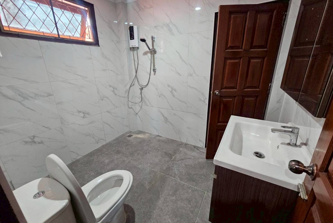 Spacious fully renovated detached house in a prime Sukhumvit 107 location, within walking distance to BTS Bearing. Ideal for both residential and business purposes — a rare find in this area.