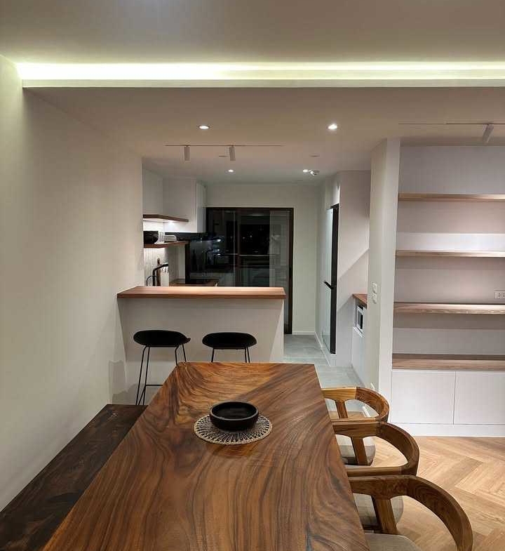 • ห้องนั่งเล่นเปิดโล่ง เชื่อมกับครัวแบบ Open Kitchen