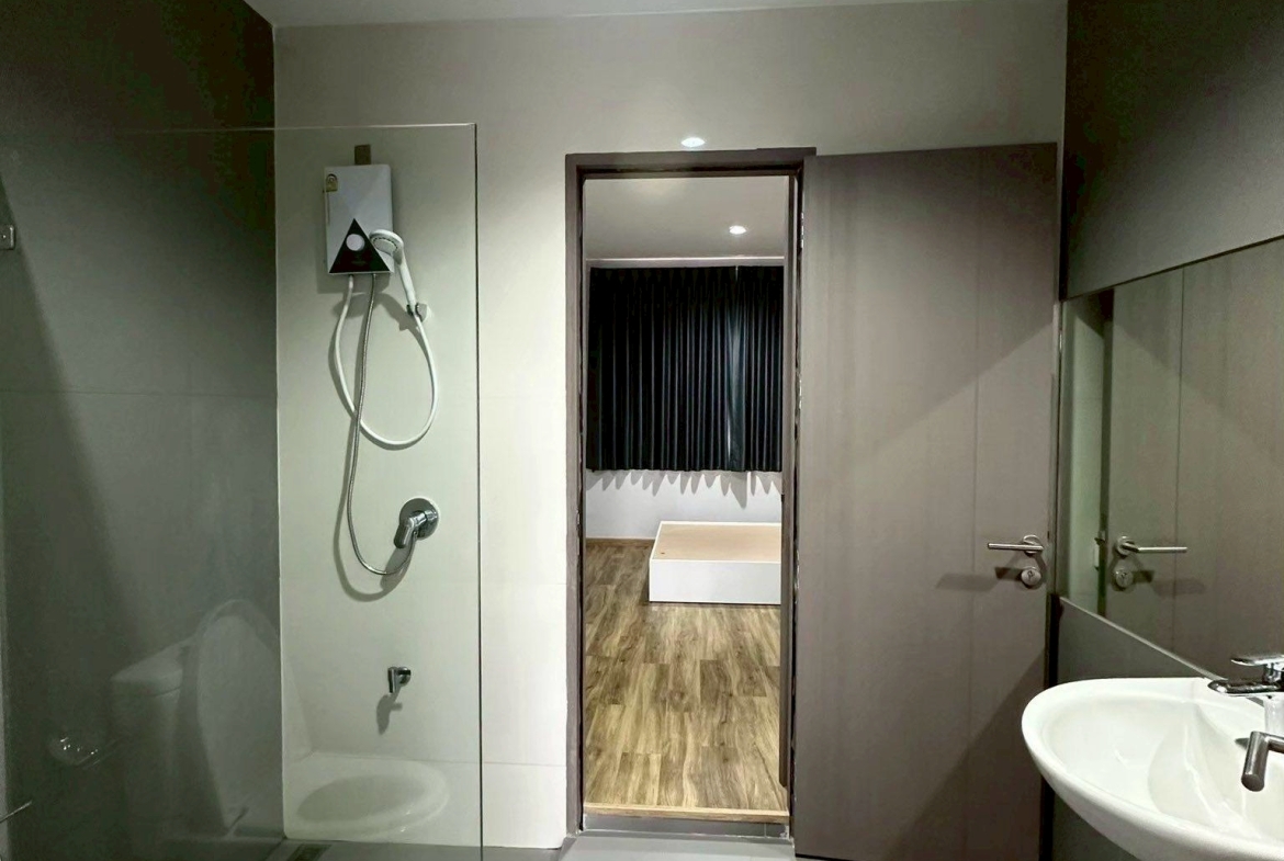 – ติดตั้งผ้าม่านและเครื่องปรับอากาศเรียบร้อย