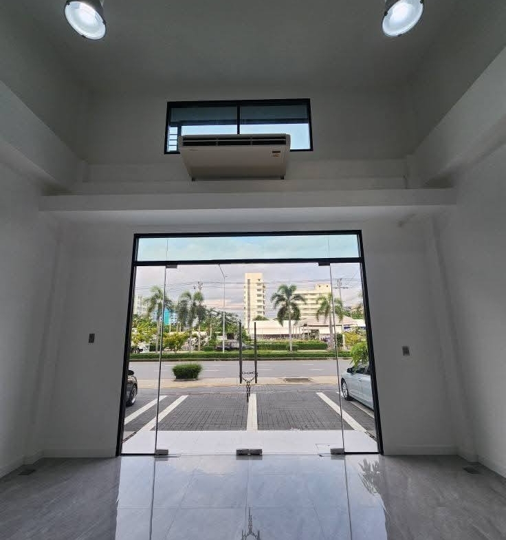 Glass doors with storefronts on 2 sides, accessible from the front on Sukhapiban 2 Road and from within the project.