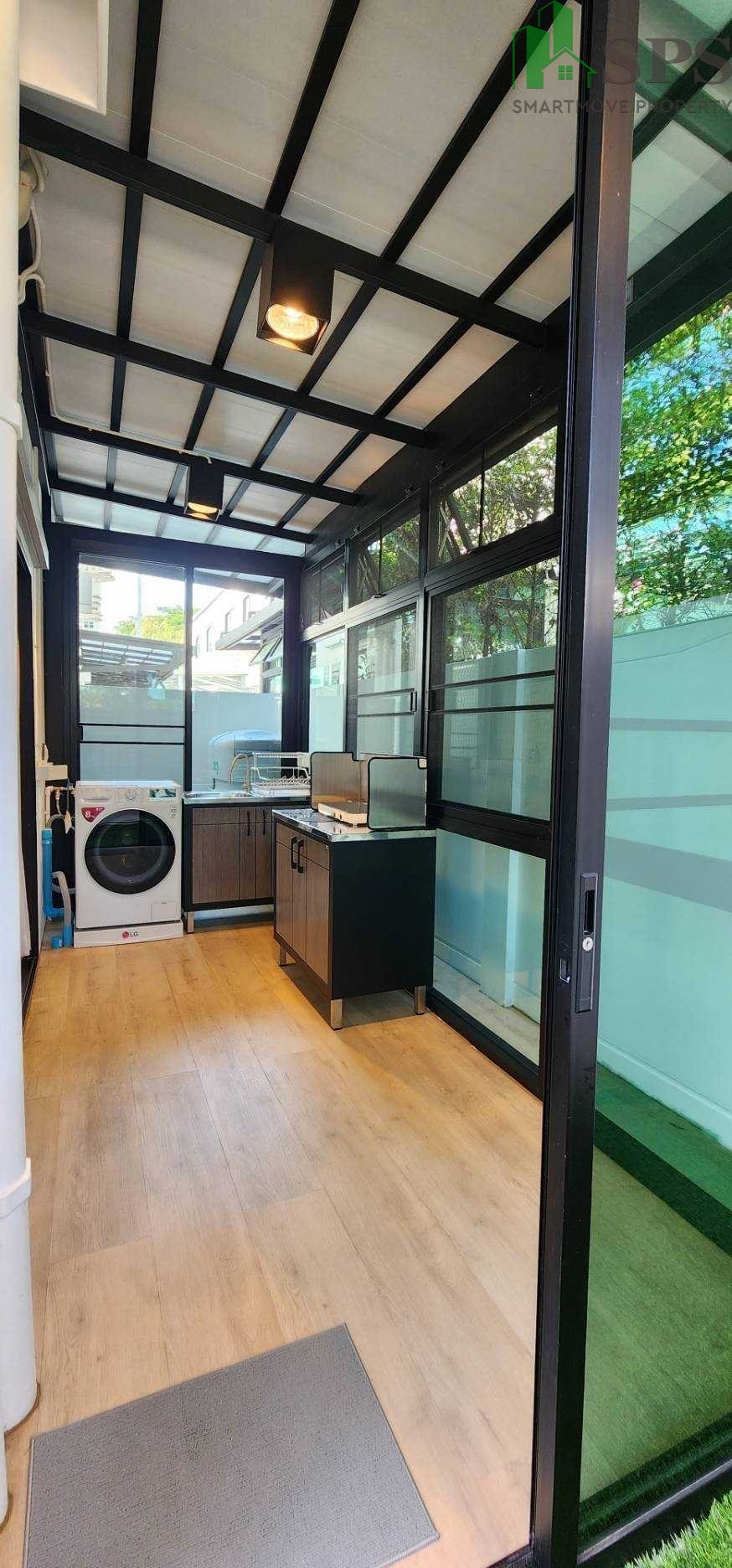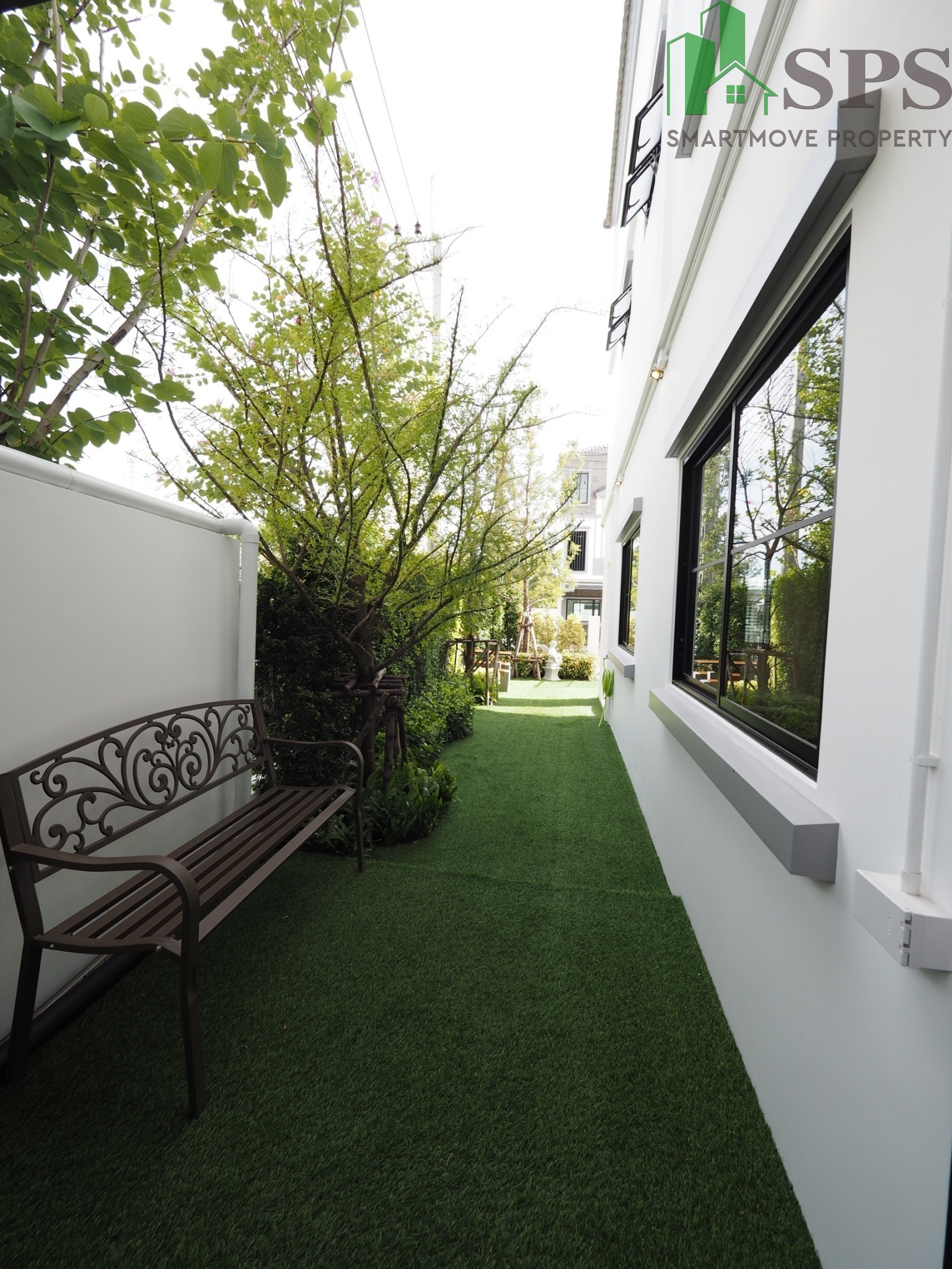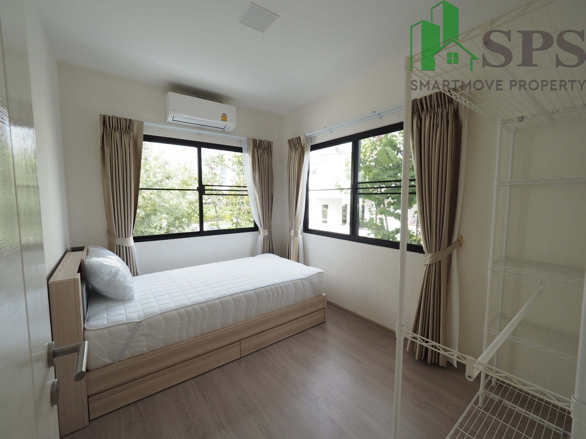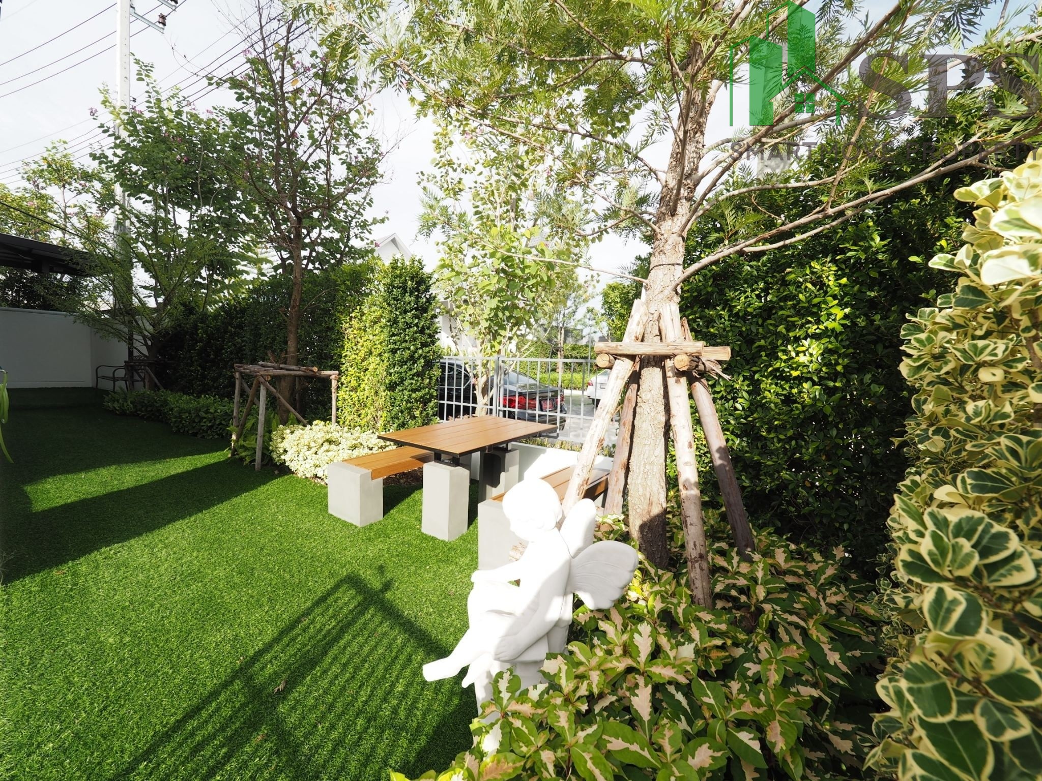 Beautiful townhouse in the area. This project is outstanding in its exclusive privacy, design from the arches, clubhouses to residential houses, all focusing on European style, using cool colors, high-pitched roofs. Casement windows of good size. Not so big on the ceiling including the design of parks and green spaces Focus on planting flower gardens. Decorated with a fountain on a raised base. and planted a large pine tree.