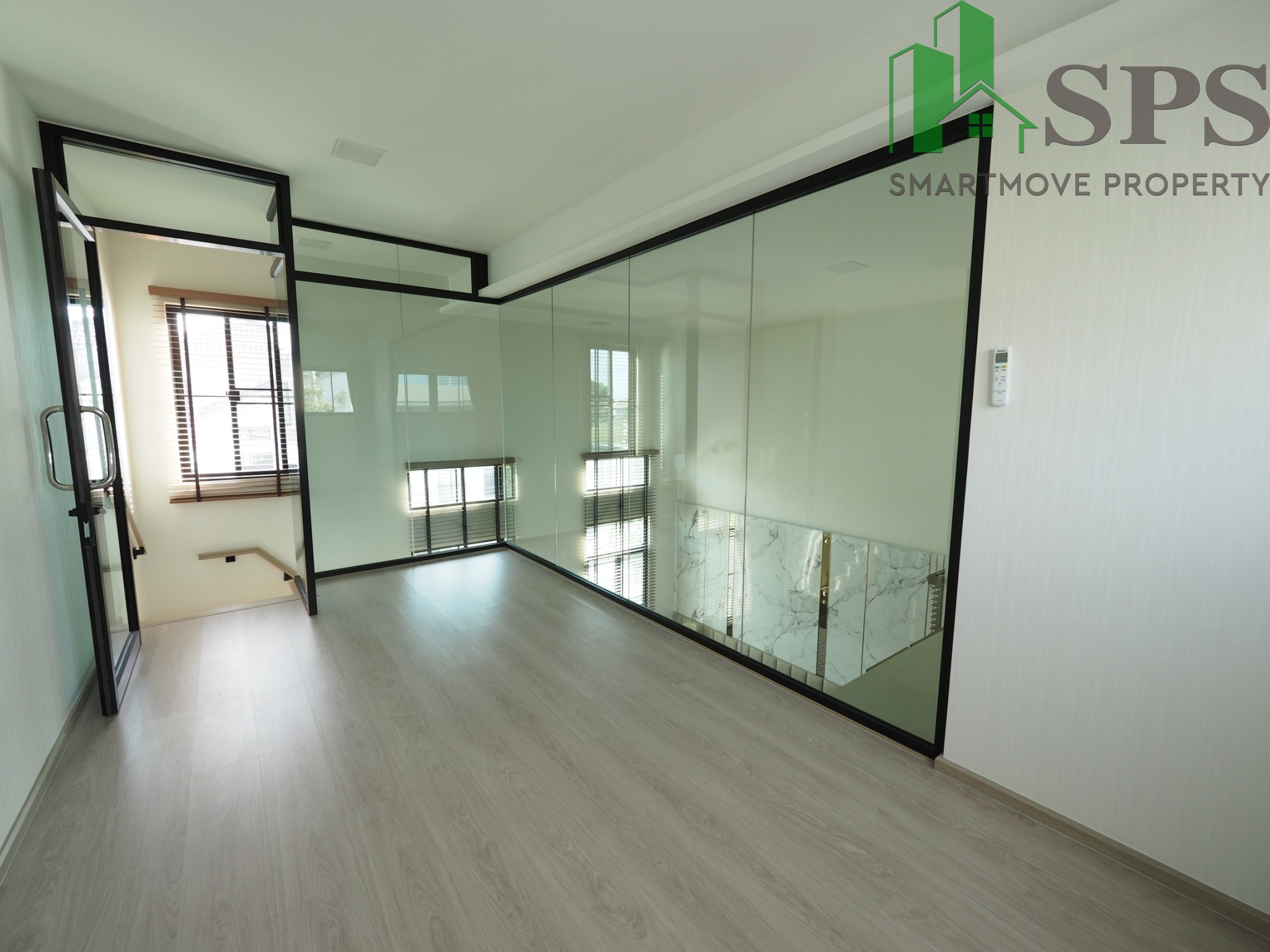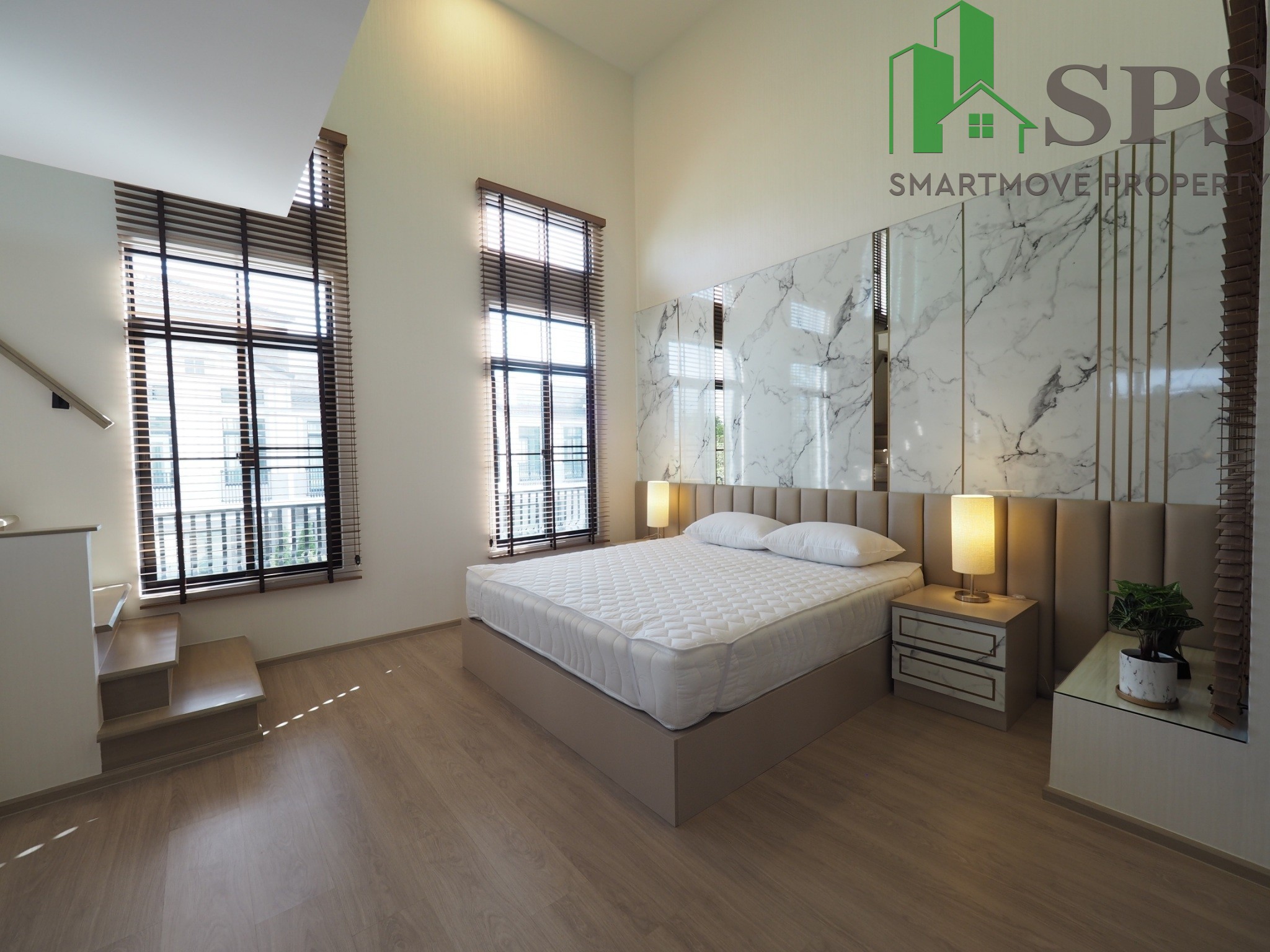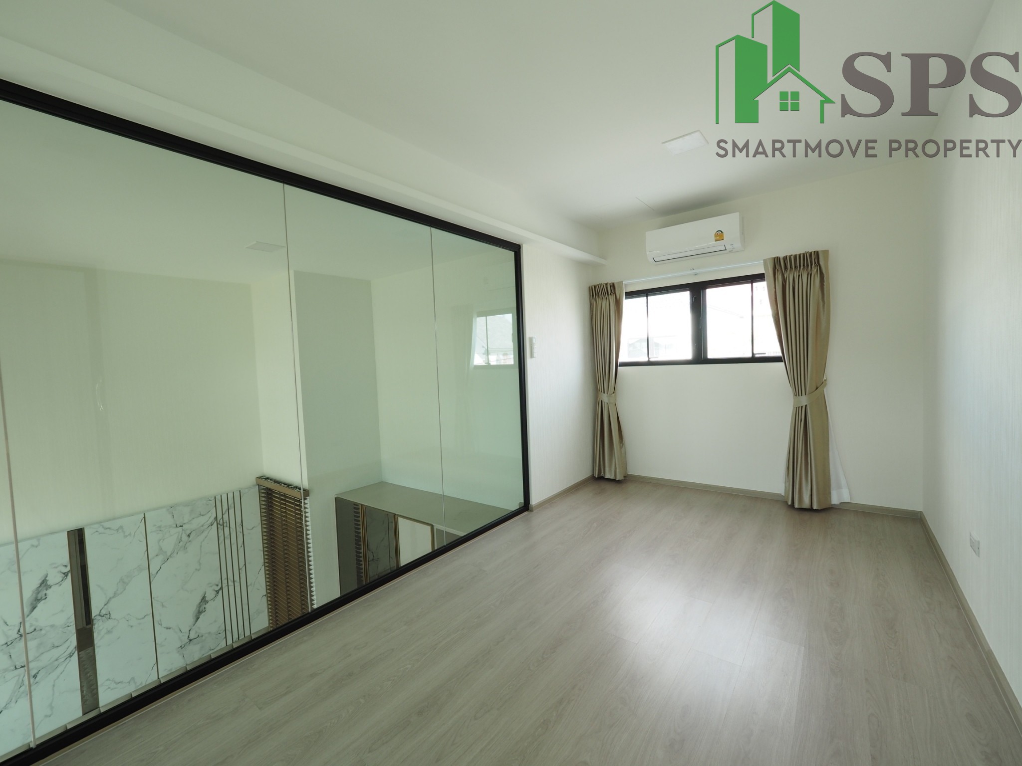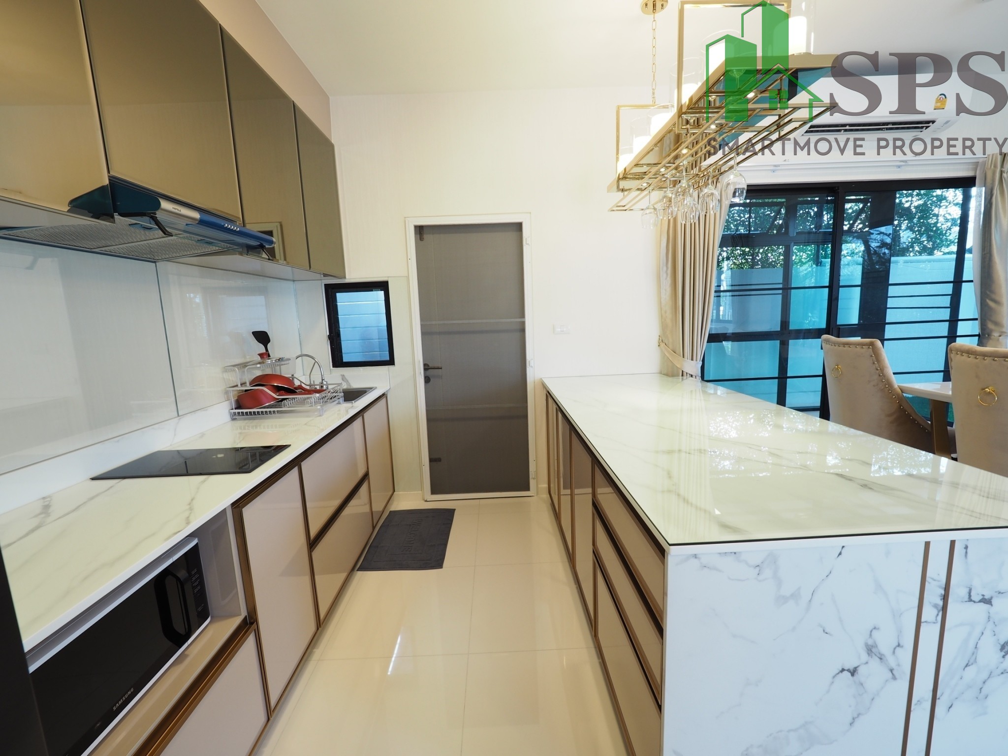 Beautiful townhouse in the area. This project is outstanding in its exclusive privacy, design from the arches, clubhouses to residential houses, all focusing on European style, using cool colors, high-pitched roofs. Casement windows of good size. Not so big on the ceiling including the design of parks and green spaces Focus on planting flower gardens. Decorated with a fountain on a raised base. and planted a large pine tree.
