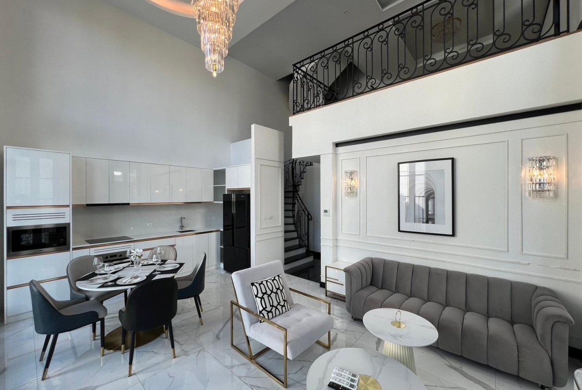 – Living Room เพดานสูง 5.5 m.โล่งโปร่ง ให้ความรู้สึกหรูหราด้วย Double Volume Space