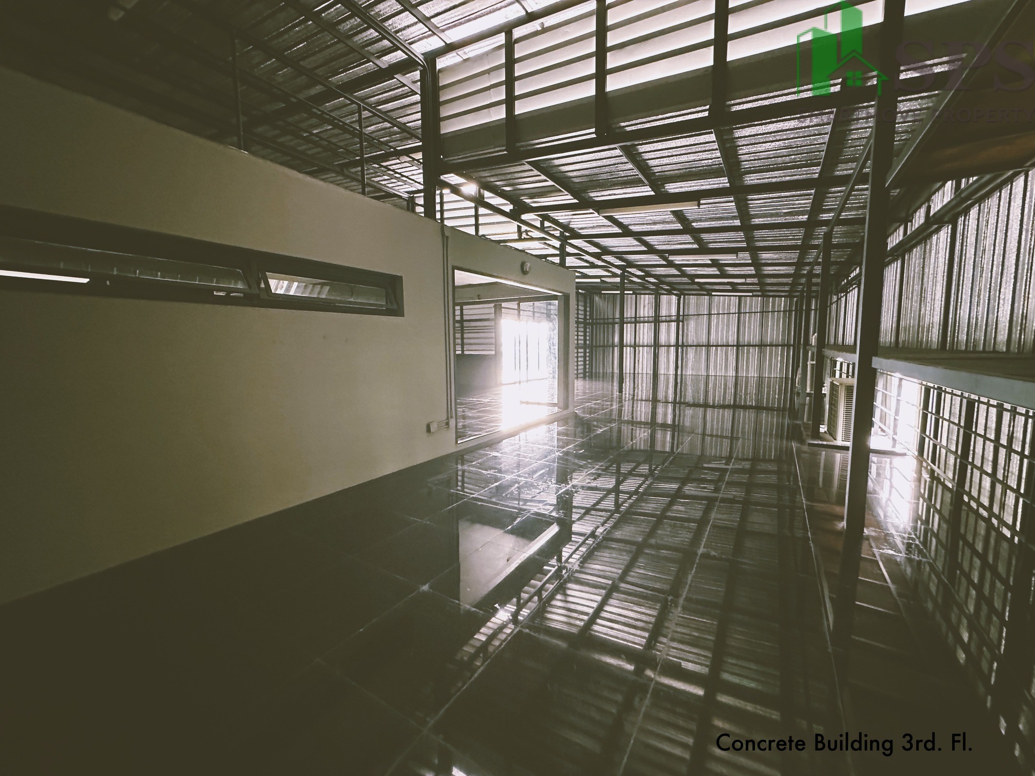 – Front building: 3-story concrete building with a large staircase to the 3rd floor and a cargo lift.