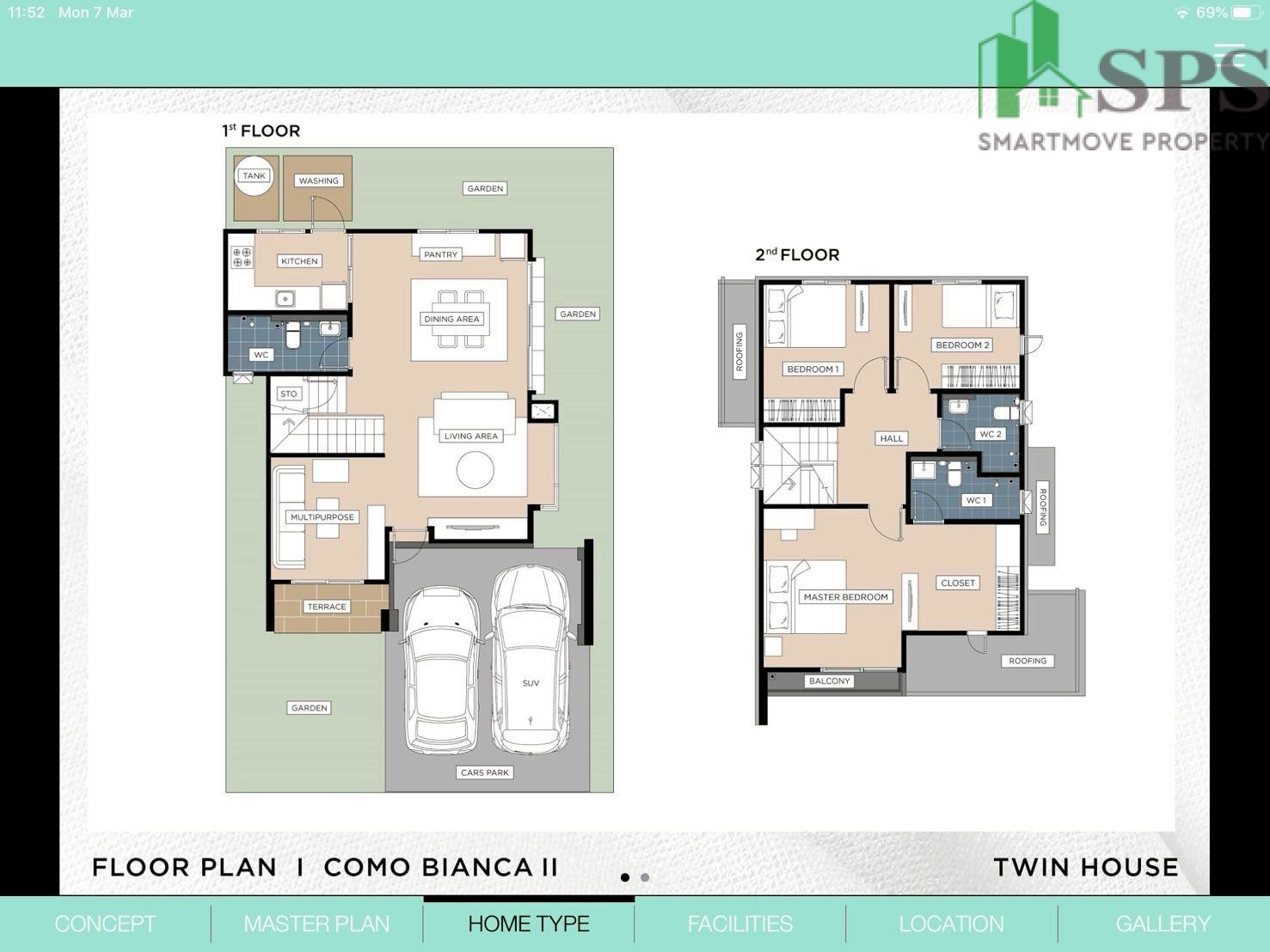 Single House for Rent at Como Bianca Bangna minimal style near Mega bangna ( SPSEVE1131 )