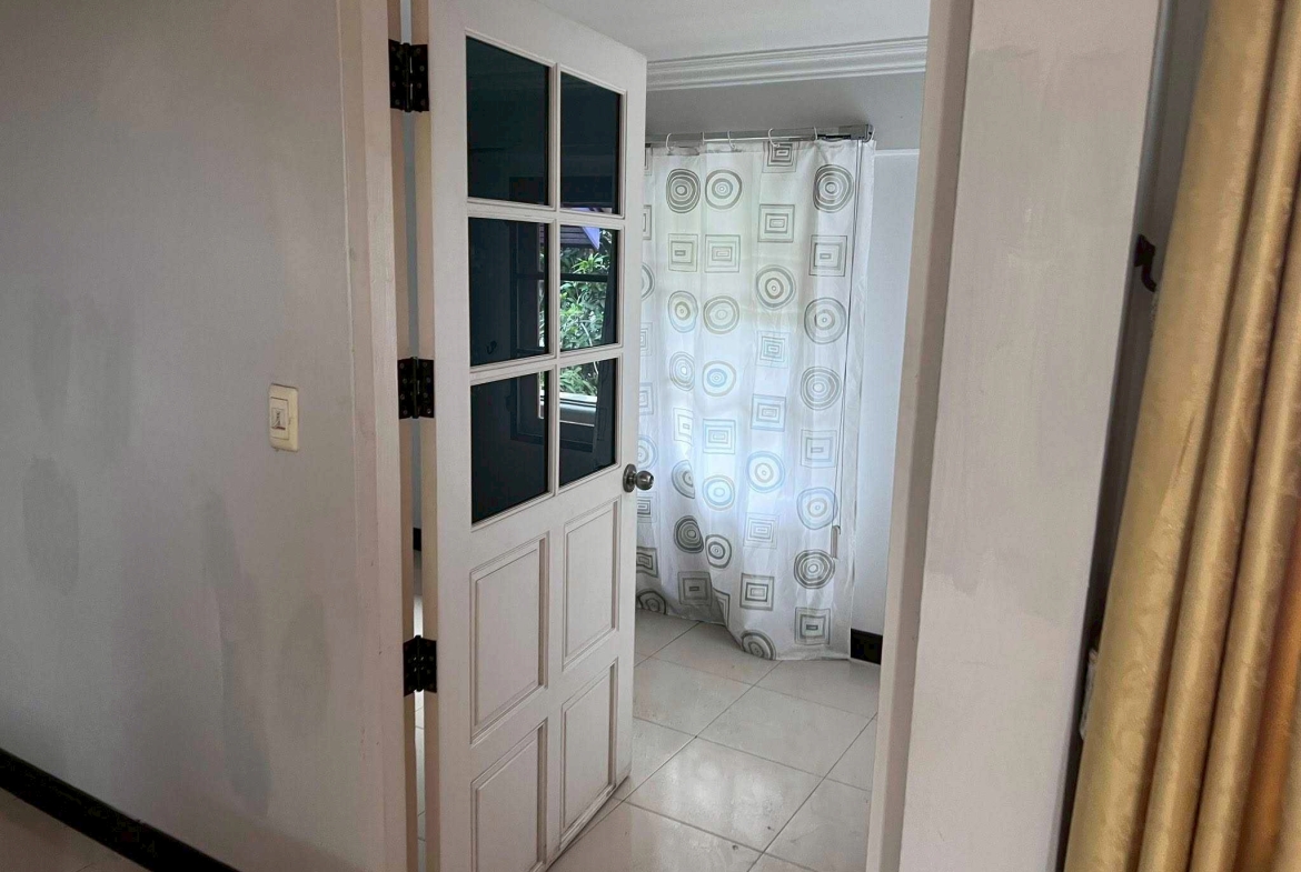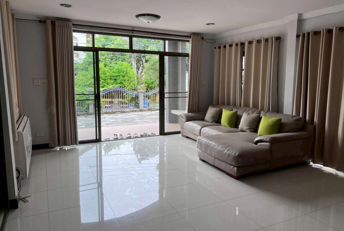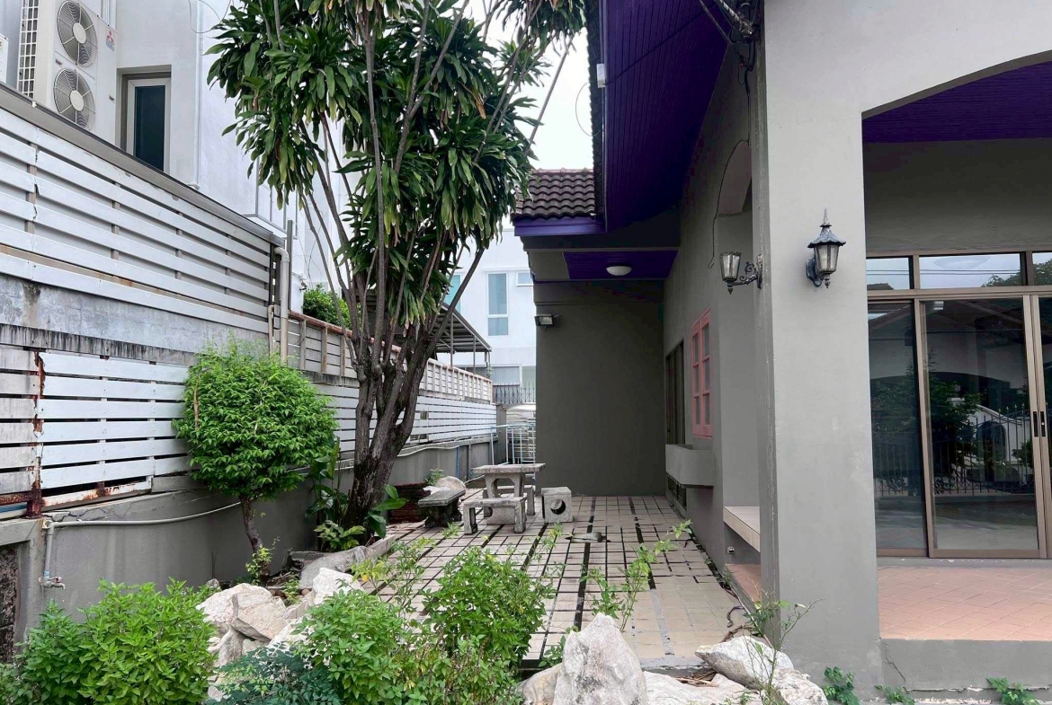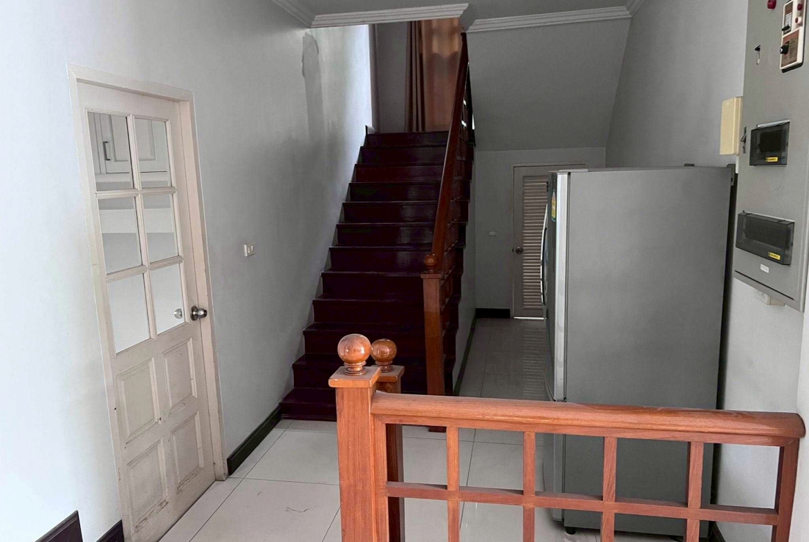 This spacious single house is available for rent in Suan Srinakarin Village Project 1, conveniently located opposite Paradise Park Srinakarin.