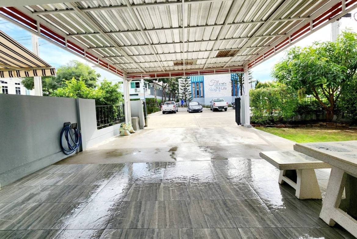 – หน้าบ้านต่อเติมหลังคาโรงจอดเรียบร้อย
