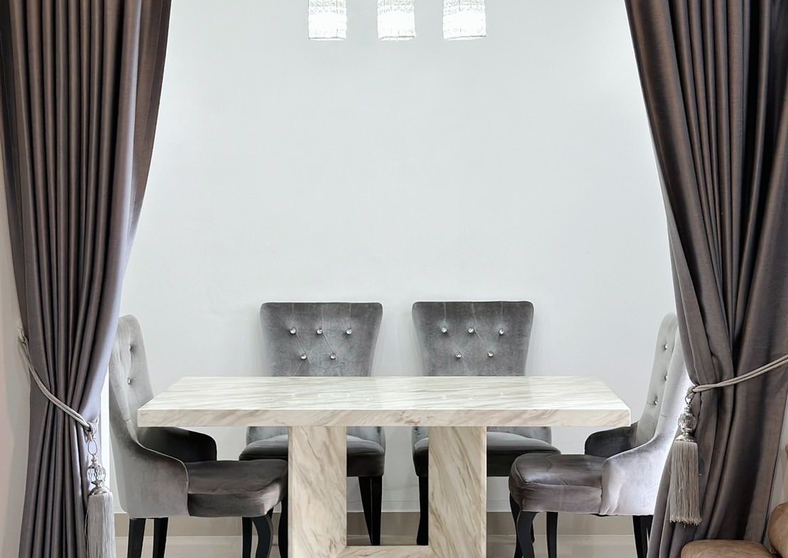 – Built-in + freestanding furniture, curtains, complete electrical appliances