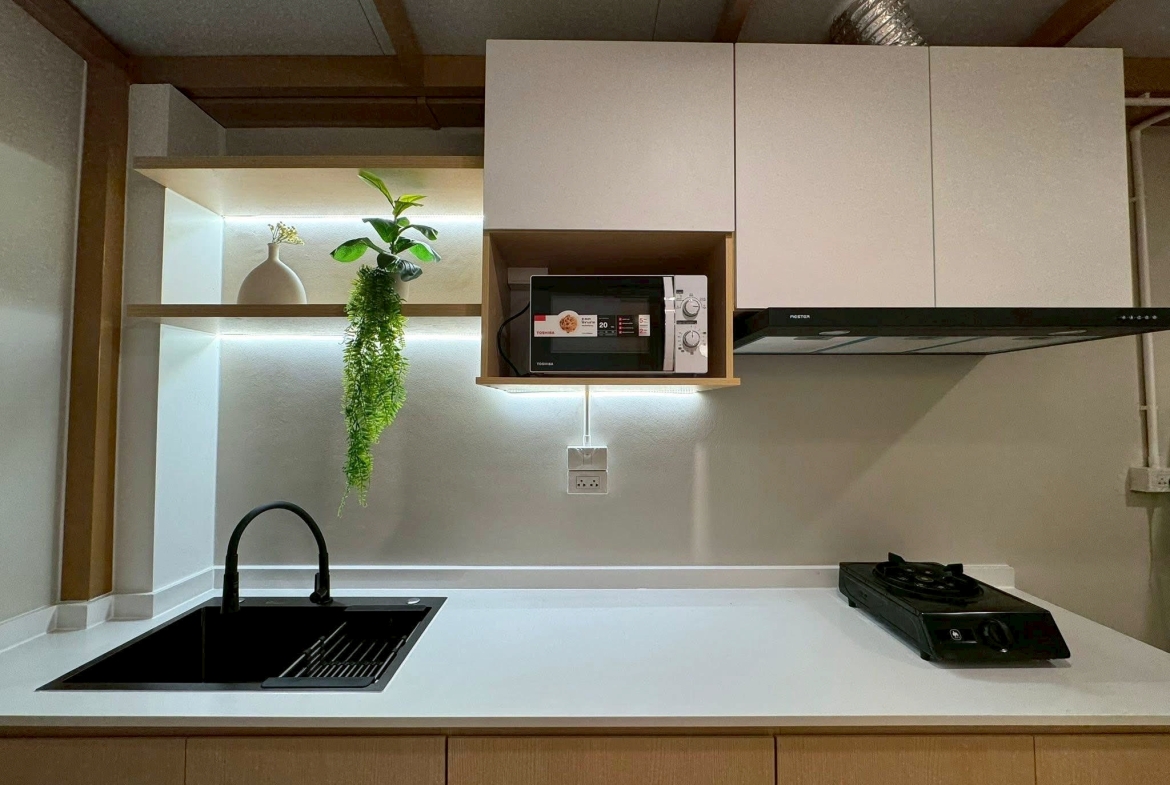 – 1 ห้องครัว (ต่อเติมด้านหลัง พร้อมบิวท์อินครบ)