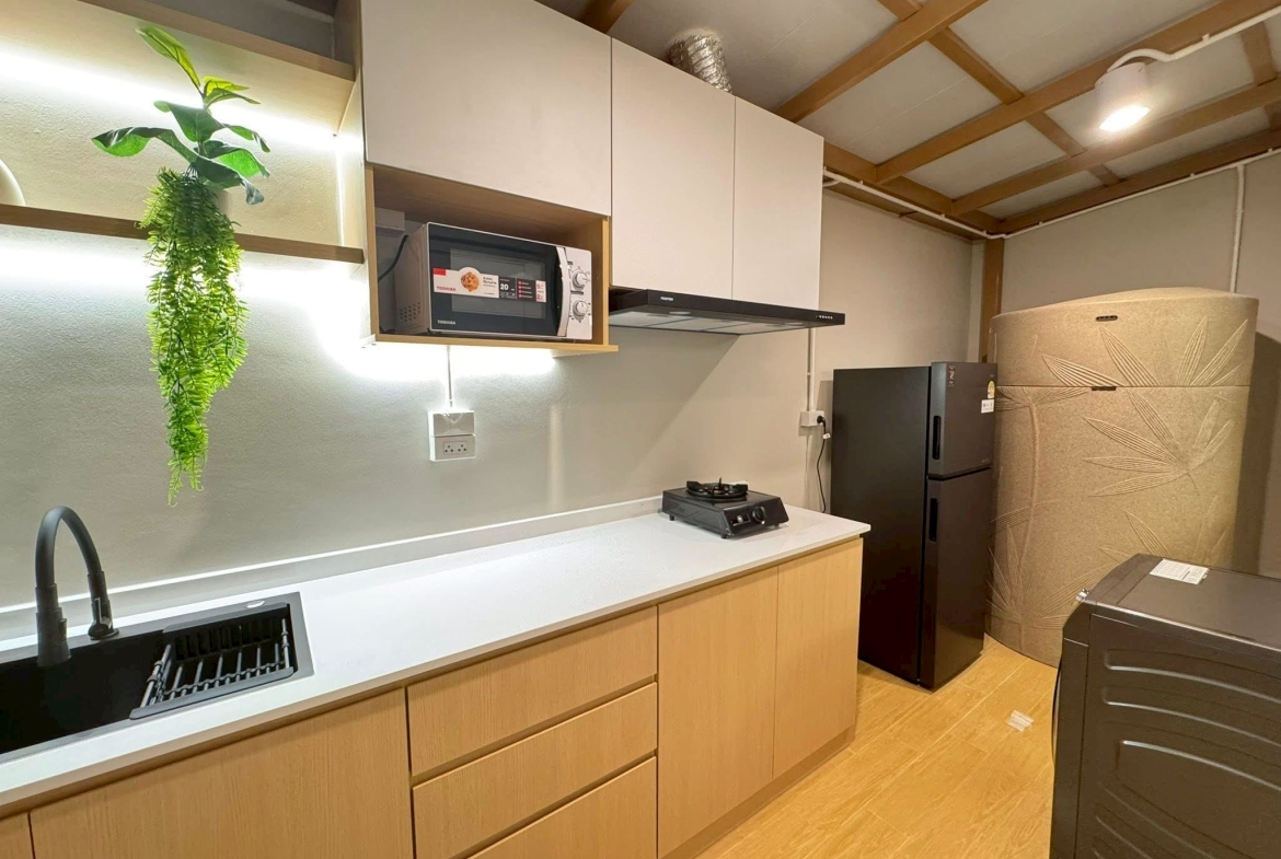 – 1 ห้องครัว (ต่อเติมหลังบ้านและบิ้วอิน)