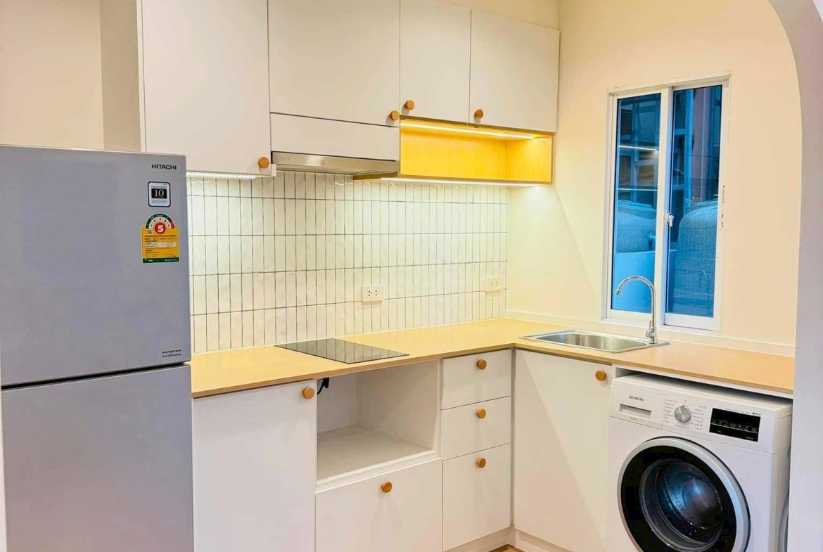 – 1 ห้องครัว พร้อมเคาน์เตอร์บิ้วอิน ตู้เย็น และเครื่องซักผ้า