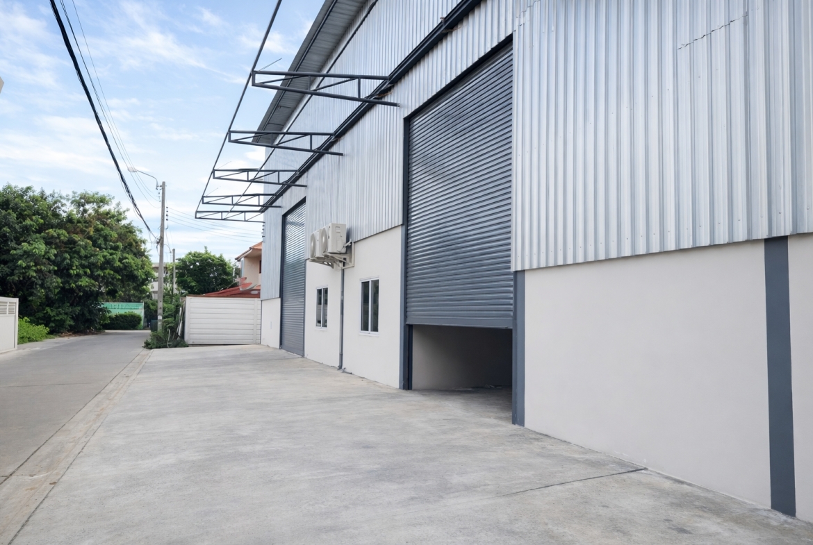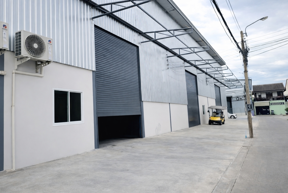 โกดังให้เช่าทำเลดี ใกล้ถนนศรีนครินทร์ เหมาะสำหรับใช้เป็นคลังสินค้า ศูนย์กระจายสินค้า หรือประกอบกิจการต่าง ๆ การเดินทางสะดวก เข้า–ออกง่าย